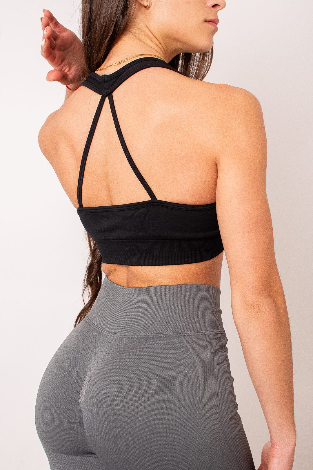 Espalda cruzada: diseño atlético que estiliza y brinda firmeza.